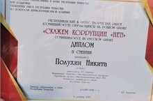 Победитель республиканского конкурса эссе на родном языке среди обучающихся школ «Скажем коррупции „Нет!”» 06.12.2023