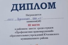 Поздравляем команду отряда по профилактике правонарушений в безопасной жизни школьников,занявших 3 место в районном квесте среди отрядов профилактики правонарушений образовательных учреждений нашего района.