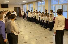 Учебная неделя началась с исполнения государственных гимнов и поднятия государственных флагов РФ и РТ.