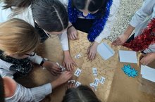Сегодня среди учащихся 8-10 классов прошла квест - игра «Новогодний каламбур». Квест - это игры, в которых игроку необходимо искать различные предметы, находить им применение, разговаривать с различными персонажами в игре, решать головоломки. Такую игру можно проводить как в помещении, или группе помещений.