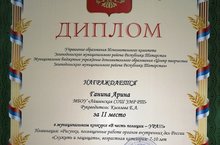 Учителя и ученики нашей школы активно принимают участие в конкурсах. Поздравляем Ганину Арину ученицу 1 «А» класса призера муниципального конкурса «В честь полиции – УРА!», учитель Киселева Е.А. Ученика 7»Б» Гараева Аделя призера II муниципального творческого конкурса «Дети - за дружбу народов! Мы за мир на планете!», учитель Моряшова И.А. Победителем муниципального конкурса научно-технического и прикладного творчества «Город мастеров» стал ученик 11 класса Никифоров Савелий, учитель Первякова И.В. Молодцы!