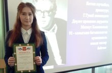 29нчы гыйнвар көнне Васильево бистәсенең 3нче номерлы мәктәбендә якташ язучыбыз, драматург, Габдулла Тукай исемендәге Дәүләт премиясе лауреаты Мәхмүт Хәсәновның 92 - еллыгына багышланган муниципаль иҗади эшләр бәйгесе үткәрелде. Бу чарада мәктәбебезнең 11нче сыйныф укучысы Вәлиева Гүзәл (укытучы Бачкова Э.В.) үзенең иҗади язма эше белән катнашты. Аның язган иншасы жюри әгъзалары тарафыннан югары бәяләнде һәм ул I урынга лаек булды. Молодец, Гүзәл! Сине шушы җиңүең белән чын күңелдән котлыйбыз. Алдагы чараларда да уңышлар теләп калабыз.