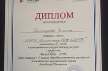 В конце декабря 2019 года в г. Зеленодольске проходил конкурс детских рисунков "Кем я хочу быть?". Ученица 2а класса нашей школы Саттарова Самира заняла почетное второе место. ПОЗДРАВЛЯЕМ!!! Остальным участникам будут вручены сертификаты, а учителям благодарственные письма