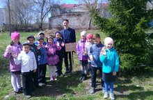 21 апреля ученики старших классов, посадили яблони вдоль тротуара.
