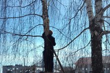 Смастерили мы скворечник.В субботу дети и их родители повесили скворечники на территории школы.