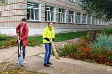 У тро у учащихся началось с трудового десанта. Настроение было замечательное.Ребята с удовольствием приводили в порядок территорию вокруг своей любимой школы!