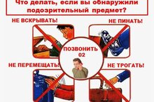 — бесхозный предмет обнаруженный в машине, в подъезде, у дверей квартиры, в общественном транспорте, в местах скопления людей, тогда немедленно сообщите о находке в полицию по телефону 02, 102.