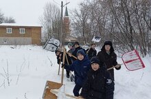В заснеженные недели ученики 5-11 классов помогали убирать снег на территории школы, а также во дворах пенсионеров!