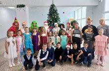 Для учеников начальной школы работники РДК им. А. Баязитова подготовили новогодний квест. Ребята отгадывали загадки, танцевали, собирали пирамидки и конечно жн пели песни вокрег елочки с Дедом Морозом и Снегурочкой.