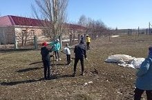 Сегодня учащиеся и учителя приняли участие в массовом субботнике. / Бүген мәктәбебезнең барлык сыйныф укучылары, укытучылары массакүләм шимбә өмәсендә катнашты. Мәктәп тирә - юнен җыештырдык.
