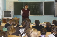 Бүген мәктәбебездә кунакта ТНВ каналының "Хәбәрләр" тапшыруы хәбәрчеләре булып китте. Алар Бишбатман авылыннан безгә укырга килеп йөрүче урыс кызы Анастасия Пустынникова турында репортаж төшерделәр.