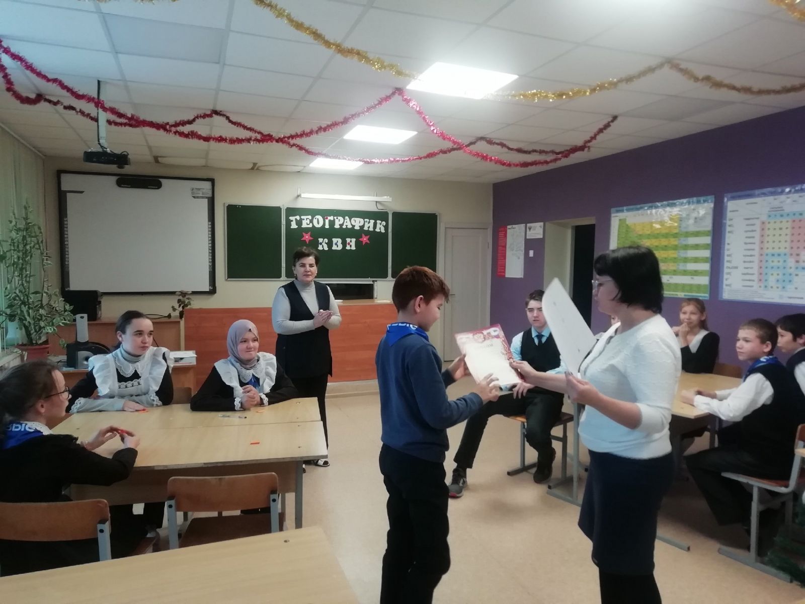 учитель географии Гульнур Ахматовна провела увлекательную игру по географии. Учащиеся проверяли свои знания по географии и боролись за победу. В итоге команда Камиля Минуллина победила с преимуществом в 5 баллов.Тарих-гегорафия атналыгы кысаларында, бүген Гөлнур Әхмәтовна географиядән мавыктыргыч уен уздырды. Укучылар географиядән алган белемнәрен сынап, җиңү өчен көрәштеләр. Нәтиҗәдә, Минуллин Камил командасы 5 балл өстенлек белән җиңеп чыкты.