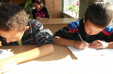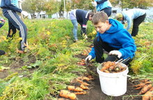 Бүген укучылар кишер-чөгендер уңышын җыеп алуда катнашты. Балаларның һәм хезмәткәрләрнең җәйге тырышлыгы юкка китмәгән, уңыш шактый югары. Ел дәвамында ашханәдә туклану өчен дә, артыгы сату өчен дә җитәчәк.