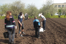 Мәктәп бакчасында эш кызу темплар белән бара. Инде менә чират бәрәңгегә җитте. Мәктәп коллективы тырышлыгы һәм әти-әниләр ярдәме белән (орлыклык материал белән) бакчага бәрәңге дә утыртып куйдык. Уңышы гына куандырылык булсын инде!