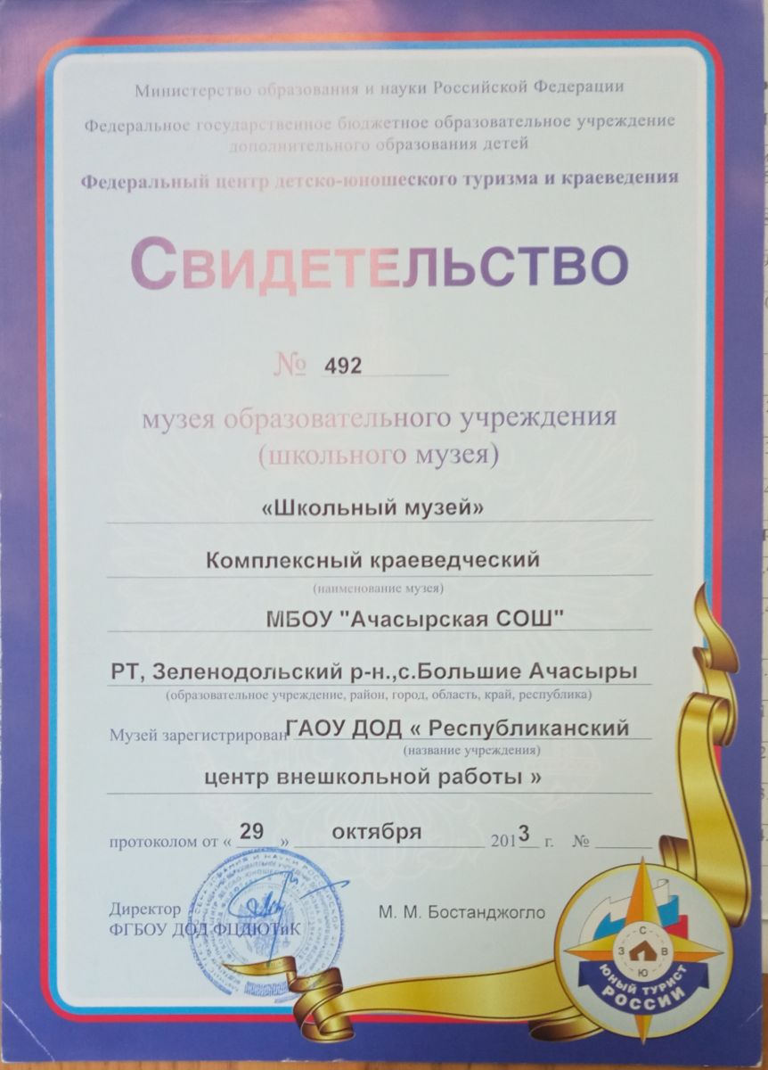 | Короткое название: | МБОУ "Ачасырская ООШ ЗМР РТ" |