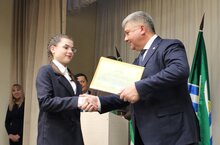 Во-первых, за активное участие в общественной жизни Раифского сельского поселения и за успехи в учебе она получила благодарность от Главы Зеленодольского муниципального района Афанасьева М.П..