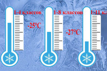 Так, ученики начальных классов ( с 1-го по 4-ый) могут пропустить уроки при температуре воздуха -25 градусов. Ученикам 5-9 классов разрешено не ходить школу при -30 градусах. Если столбики термометров опустились ниже -35 градусов, то оставаться дома могут учащиеся 10 и 11 классов.