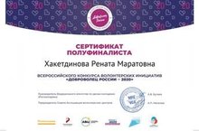 Поздравляем нашу ученицу 10 класса Хакетдинову Ренату! Она вошла в полуфинал Всероссийского конкурса волонтерских инициатив "Доброволец России - 2020". Желаем ей попасть в финал! Мы всей школой за нее болеем!