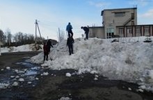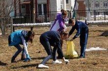 В республике начался "Экологический двухмесячник" по уборке территорий. Наша школа не осталась в стороне. Пока еще мусор не оттаял, мы раскидываем снег.