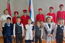 Каждому участнику "Орлят России" был вручен памятный брендированный подарок - значок. с логотипом "Орлята России". Также галстуки были вручены классному руководителю. -
