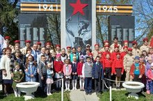 Наша школа приняла участие в торжественном митинге, посвященном Дню Победы. Юнармейский отряд возложил венок и гирлянду славы, ученики начальных классов прочитали стихи и поздравили всех ветеранов открытками и шарами.
