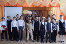В нашей школе этот день был отмечен двумя мероприятиями. Учащиеся 5 класса показали отрывок из знаменитого спектакля Г.Камала "Беренче театр". Дети старательно перевоплощались в роли своих героев.
