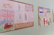 Инглиз теле атналыгы кысаларында плакатлар һәм стена газеталары күргәзмәсе куелды. Балаларда үз стенгазеталарын булдыруга иҗади якын килделәр. Хәзер безнең мәктәп диварын төрле фильмнар, китаплар геройлары, шулай ук Бөекбритания Берләшкән Корольлеге символлары бизи.