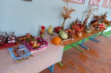 После того, как в садах был собран весь урожай, в нашей школе была организована выставка поделок из природных материалов. Такие выставки стали традиционными и проводятся ежегодно. Учащиеся исполнили различные композиции из осеннего урожая, продемонстрировали свои творческие способности. Что только не придумали: из картофеля - бабочка – пчела, из тыквы-черепаха, самолет, из тыквы-кошка и другие забавные вещи.