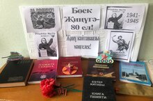 “Җиңү кайтавазы мәңгелек!” күргәзмәсе2025 ел Россиядә Ватанны саклаучылар елы дип игълан ителде. Бөек Ватан сугышында Җиңүнең 80 еллыгын бәйрәм итү елында бу аеруча мөһим. Шушы истәлекле дата уңаеннан мәктәбебез китапханәсендә “Җиңү кайтавазы мәңгелек!” дигән китап күргәзмәсе оештырылды. Күргәзмә әлеге истәлекле вакыйганың төрле якларын яктырта. Тәкъдим ителгән һәр эш тарихи әсәр, документ кына түгел, ә миллионлаган кешеләрнең батырлыгы, ныклыгы һәм каһарманлыгының тере дәлиле дә булып тора. Бигрәк тә “Хәтер китабы” аерым игътибарны җәлеп итә. Ул 1941-1945 еллардагы Бөек Ватан сугышында һәлак булган һәм хәбәрсез югалган якташлар турында. Ел дәвамында күргәзмә фотографияләр һәм документлар белән тулыланачак. -