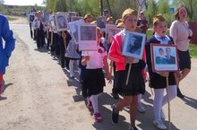 «Үлемсез полк» акциясе – 9 май бәйрәменең тагын бер күркәм традицияләренең берсе. Халык сугышта катнашкан, яу кырында ятып калган туганнарының истәлекле фотосурәтләре белән урамга чыга. Бу акциягә мәктәп укучылары да кушылды.
