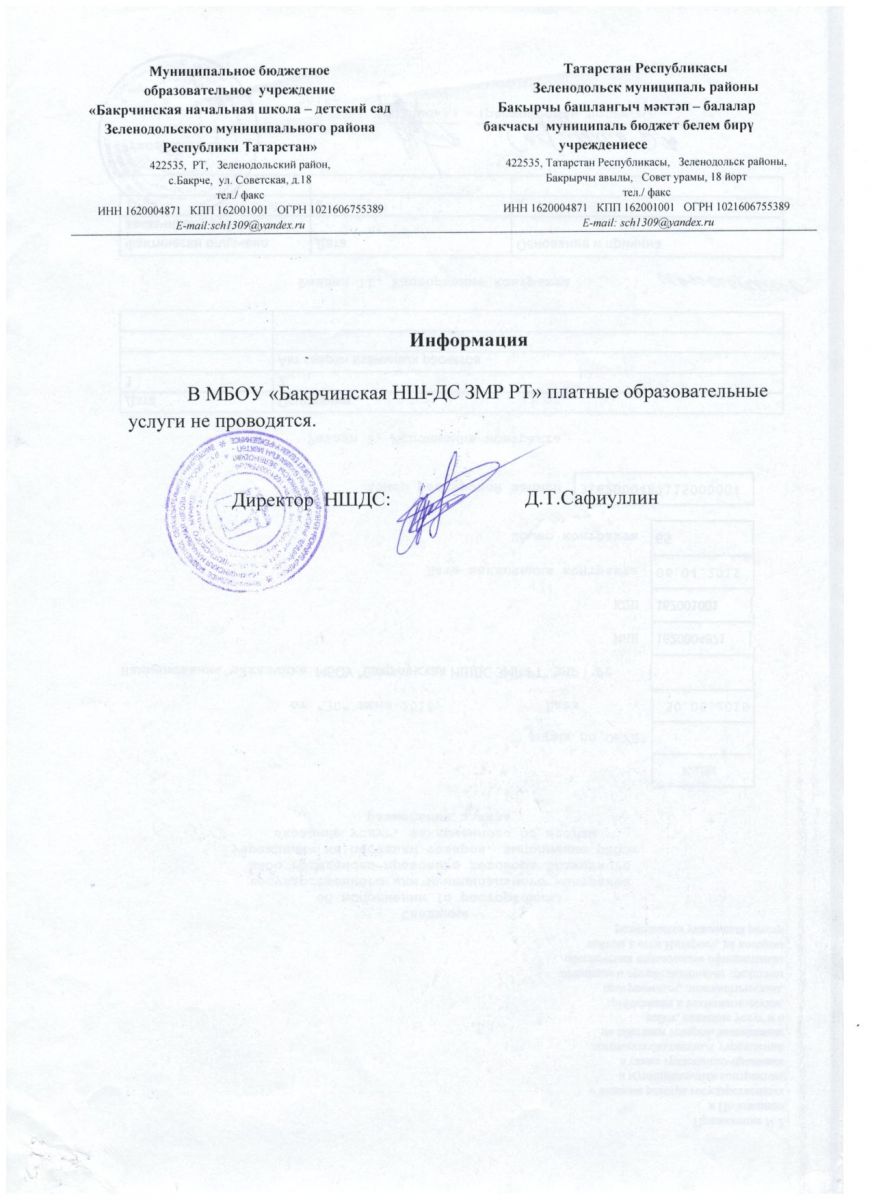 | Короткое название: | МБОУ "Бакрчинская НОШ-ДС ЗМР РТ"\"ТР ЗМР Бакырчы БГБМ-ББ" МБГБУ |