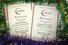 С 5 ноября по 11 декабря 2015 года Образовательным центром " Созвездие" г. Набережные Челны, был организован Всероссийский творческий конкурс " А я выбираю книгу". В конкурсе приняли участие и наши ученики. Минбаев Давид награжден дипломом 3 степени в номинации " Сказки А.С. Пушкина", Гильфанова Азалия награждена дипломом третьей степени в номинации "Теремок" . Поздравляем! Молодцы!