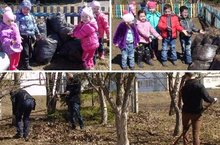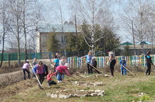 Без бүген зур өмәгә чыктык. Үзебезнең яратып уйный торган мәйданчыгыбызны яфраклардан чистарттык. Безгә ярдәмгә абыйларыбыз да килде.