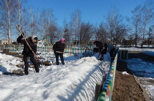 В апреле у нас начались средники и субботники по очистке территории школы от снега и мусора.