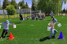 Сегодня в детском саду прошел наш национальный праздник – Сабантуй. Дети бегали с яйцами в ложке, соревновались ведрами с водой, разбивали горшки. Во время соревнований дети падали и поднимались, но не кто не уходил с игры. На каждой игре была большая очередь для участия. Таким образом, праздник прошел весело.