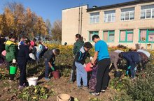 Бүген 5-9 сыйныф укучылары укытучылар белән берлектә мәктәп бакчасында кишер, чөгендер уңышы, чәчәк орлыгы җыйдылар.