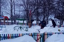 Сегодня родители помогли очистить детскую площадку от снега. Благодарим неравнодушных отцов!