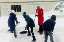 В целях воспитания в подрастающем поколении патриотизма, бережного отношения к историческому наследию, ученики провели уборку снега на территории памятника в честь земляков, погибших в Великой Отечественной войне.
