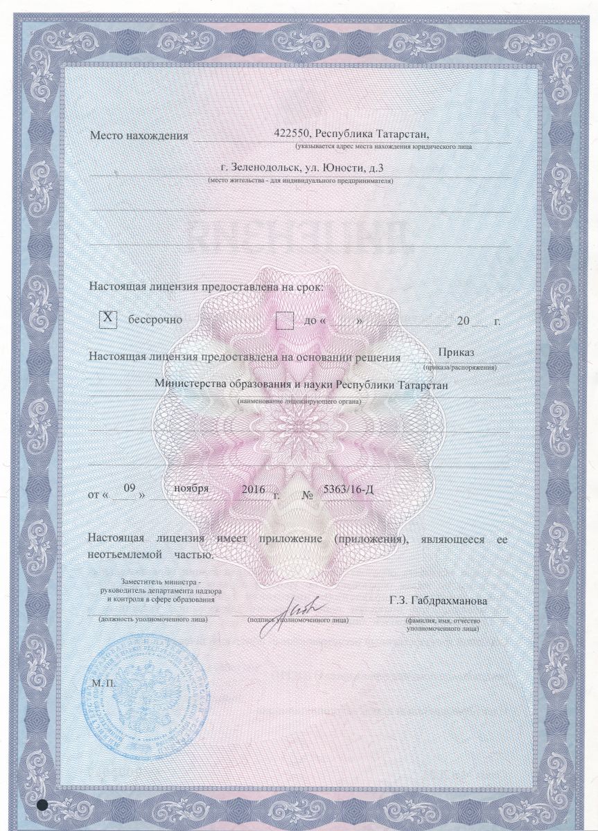 | Адрес: | 422550. РТ, г. Зеленодольск, ул. Юности, д 3 |