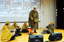 8 мая, в преддверии празднования 79-летия Дня Победы, на сцене актового зала Химического лицея состоялась премьера спектакля по поэме Александра Твардовского «Василий Тёркин. Книга про бойца». Очень хотелось познакомить ребят с этим произведением, которое отражает трагические события Великой Отечественной войны и освещает историю простого солдата, его борьбу, стойкость и верность принципам.