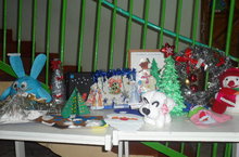 В фойе детского сада проходит выставка творческих работ по мотивам новогодних сказок и мультфильмов "Мы на праздник к вам спешим!"