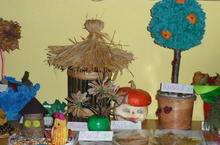 В нашем детском саду стало уже традицией проведение выставки поделок из природного материала. Работа с природным материалом приобщает детей к искусству, к творчеству, формирует экологическое сознание. Этой осенью в рамках программы Эко-школы/Зелёный флаг мы решили добавить бросовый материал и назвали выставку "Осенние фантазии".