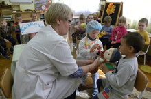 19 сентября в детском саду проведено общее родительское собрание. В ходе собрания, наряду с вопросами организации жизни детей в новом учебном году, рассмотрена проблема вакцинопрофилактики гриппа. Перед родителями выступила старшая медсестра детского сада Э.И. Сухнёва, которая рассказала о социальной значимости заболевания гриппом и преимуществе вакцинопрофилактики в предупреждении заболевания. Воспитанники подготовительной группы №4 (воспитатель Н.В. Никулина) показали родителям театрализованное представление «Секреты здоровья», а дети группы №11 (воспитатели Н.Н. Гаранина, Г.Х. Трегулова) представили свою агитбригаду «Чтоб от гриппа не свалиться, надо вовремя привиться!»