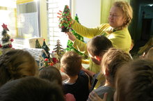 20 декабря в детском саду открылась выставка новогодних ёлочек, сделанных умелыми руками родителей наших воспитанников. Дети всех возрастных групп вместе с воспитателями совершили экскурсию на выставку, отметили разнообразие использованных в работе материалов и красоту самодельных ёлок. В ходе экскурсии сделан важный экологический вывод, что живая ёлочка должна расти в лесу, а праздничное настроение может создать ёлка, сделанная своими руками.