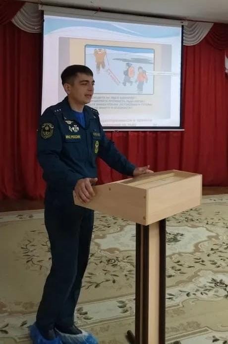 Дети внимательно слушали рассказ Сергея Евгеньевича о мерах предосторожности и опасностях, связанных с выходом на тонкий лёд. Затем ребята перешли к активной части мероприятия, поучаствовав в моделировании ситуаций спасения утопающих. Практическое занятие позволило детям закрепить полученные знания и научиться правильным действиям в экстренных ситуациях.