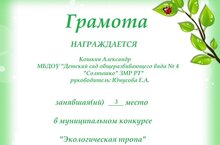 Муниципальный конкурс «Экологическая тропа»/ "Экологик сукмак»муниципаль конкурсы 16.12.2022 Поздравляем воспитанника нашего детского сада Кошкина Александра и воспитателя Юнусову Е.А., с призовым 3 местом в конкурсе «Экологическая тропа». Молодцы!!!