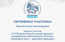 VII Всероссийский онлайн форум-конференция «Воспитатели России» по теме «Здоровые дети-здоровое будущее»/ «Сәламәт балалар-сәламәт киләчәк» темасы буенча «Россия тәрбиячеләре " VII бөтенроссия онлайн-конференциясе» 07.05.2020