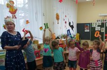 Волшебница - Осень пришла в каждую группу. В младших группах ребята танцевали с осенними листочками, пели песни, играли в игры. В средней группе Осень то и дело доставала из своего волшебного сундучка волшебные шапочки, которые превращали детей в разные овощи, тем самым раскрывая творчество и талант детишек. Детям доставило это удовольствие и праздничное настроение. На празднике ребята читали стихи для гостей, танцевали, пели песни.