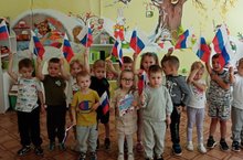 С чего начинается Родина?.. В детском саду «Чебурашка» об этом знает каждый воспитанник. Герб, флаг, гимн – основные символы государства, известные гражданам нашей страны с раннего детства. 22 августа отмечается День Государственного Флага Российской Федерации. Приобщение детей к государственной символике РФ – одна из приоритетных задач в патриотическом воспитании дошкольников. Патриотические чувства формируются с рождения ребёнка, в процессе всей его жизни. Это чувства любви к семье, к детскому саду, родному городу, родной природе, соотечественникам, осознание себя как гражданина своей страны, уважительно относящегося к символике – флагу, гимну, гербу. Наша задача состоит в том, чтобы помочь детям в полной мере понять, осмыслить символы, их происхождение, значение, образы, функции. И как человек не может жить без имени, фамилии и отчества, так и его Родина не может существовать без флага, герба и гимна. В рамках празднования Дня Государственного флага РФ в нашем детском саду прошли мероприятия, направленные на знакомство детей с государственными символами России.