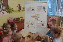 12 ноября в России отмечают экологический праздник «Синичкин день «. В этот день жители разных населенных пунктов страны готовятся к встрече «зимних гостей « из леса-птиц,остающихся на зимовку в российских регионах. Сегодня в группе N2”Пчелки» прошло знакомство с желторотой гостьей-синичкой. Дети рассмотрели ее внешний вид,послушали как она «разговаривает» и поиграли в дидактические игры: «Синичкина тень», «Пластилиновая заплатка», «Синичкина столовая» и другие. А также на прогулке повесили заранее изготовленные совместно с родителями кормушки для пернатых друзей.